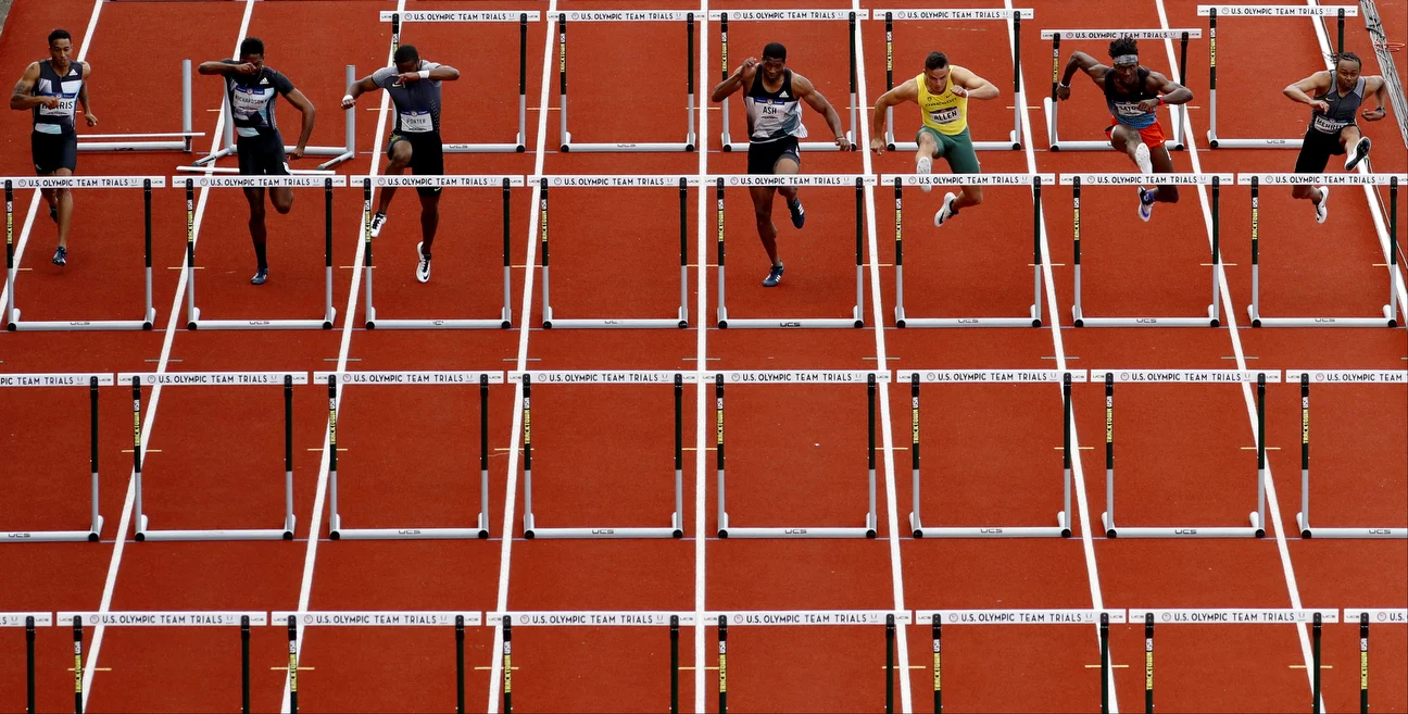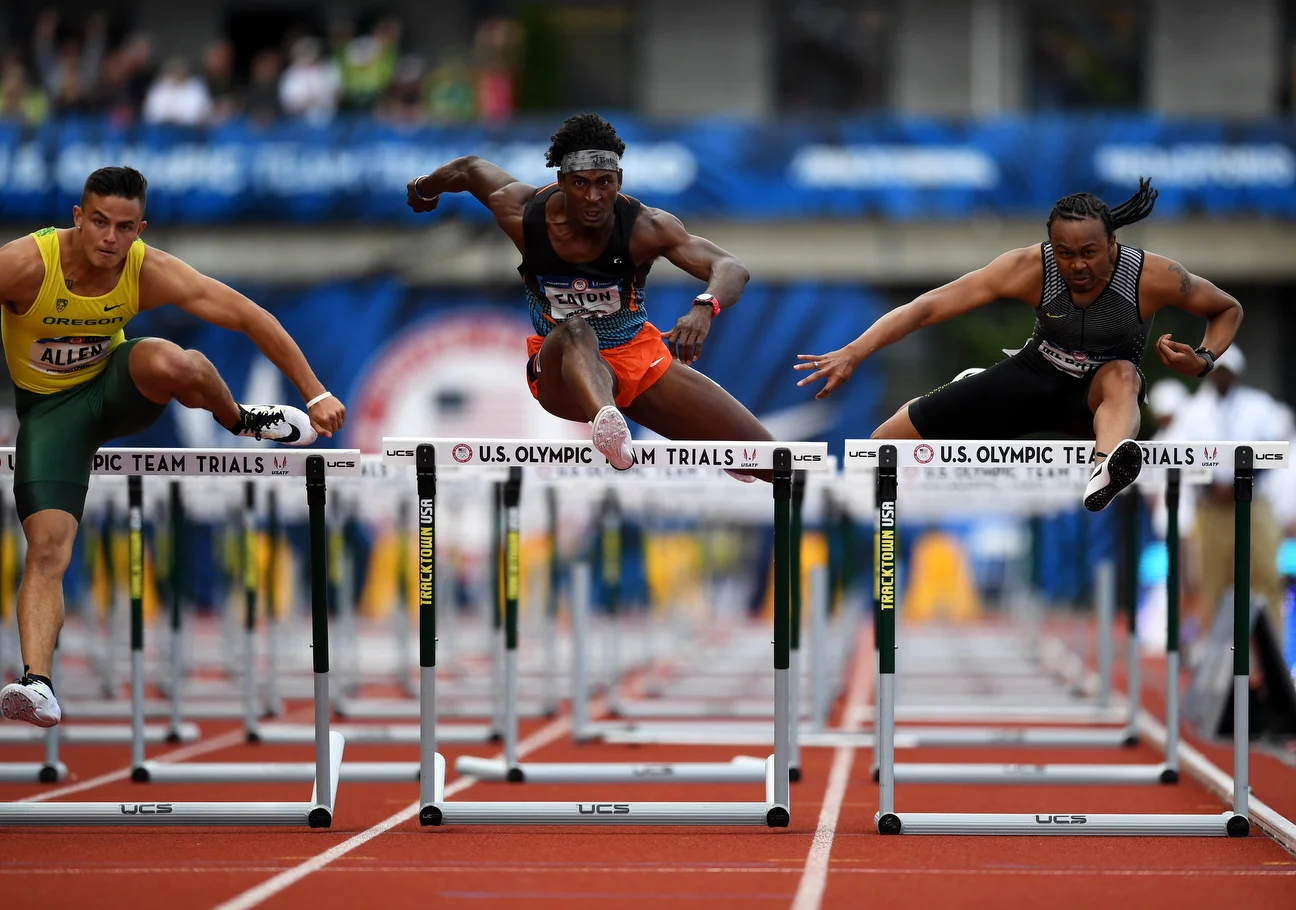 Leaping over the last hurdle, Merritt was behind Devon Allen and extremely close in the race to be among the next two finishers who would qualify for the Olympic team. The finish was so close that determining those qualifiers took an agonizing amount of time.