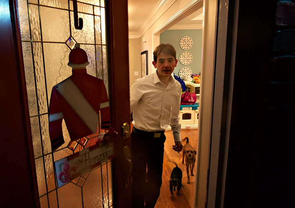 Hernandez opens the door to his home on Thursday. Hernandez told reporters that the pressures of the Derby have reduced him to an average of about four hours of sleep per night in the lead-up to this race.