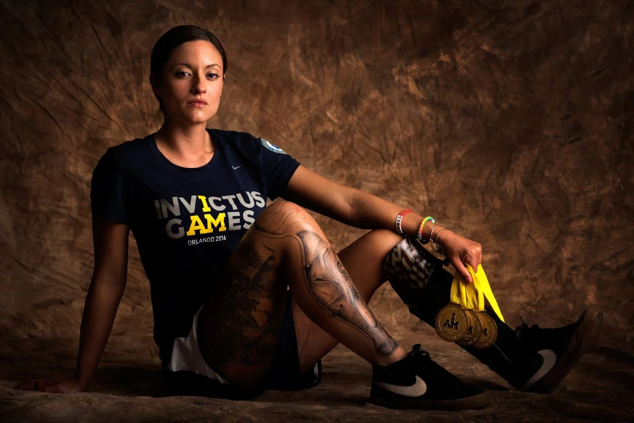 Kristen Esget, 30, is retired from the Coast Guard and is the only woman to represent that military branch at the Invictus Games. She is from Ridgeway, Virginia, and competed in swimming.