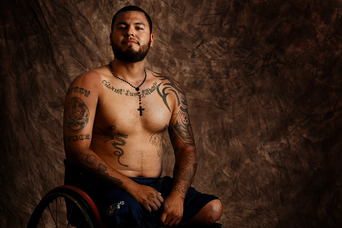 Sualauvi Tuimalealiifano, 37, is from Kalihi, Hawaii. He was serving with an elite special operations team in southern Afghanistan when he was trapped by Taliban fighters. Sua's injuries left him paralyzed from the neck down. He won gold in wheelchair rugby.