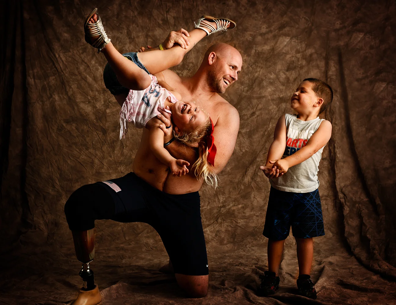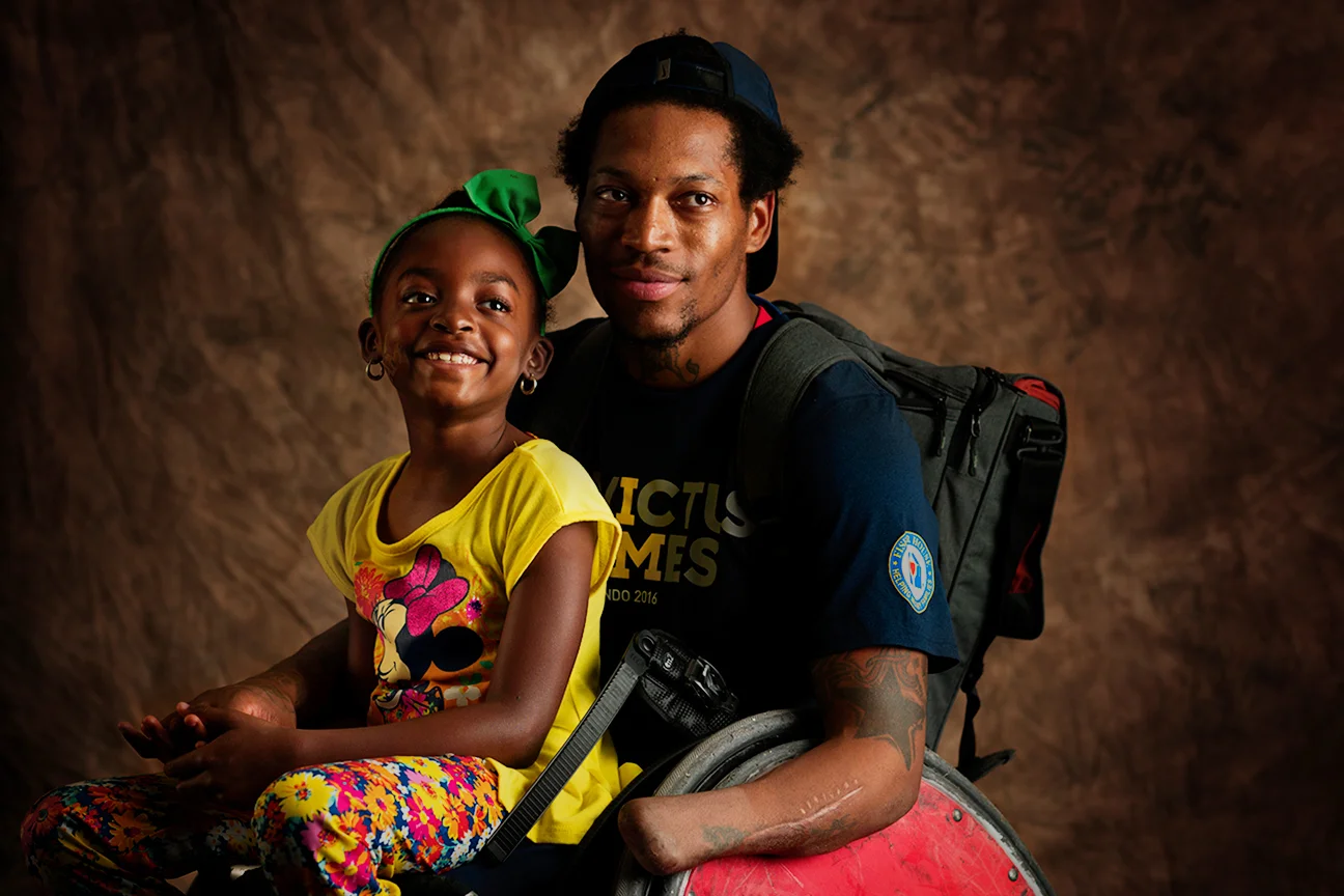 Anthony McDaniel, 27, and his daughter, Dejah, 7. McDaniel is a Marine Corps veteran originally from Pascagoula, Mississippi. He captained the gold medal-winning rugby team, won a gold medal in basketball and bronze in rowing and 100 meters.
