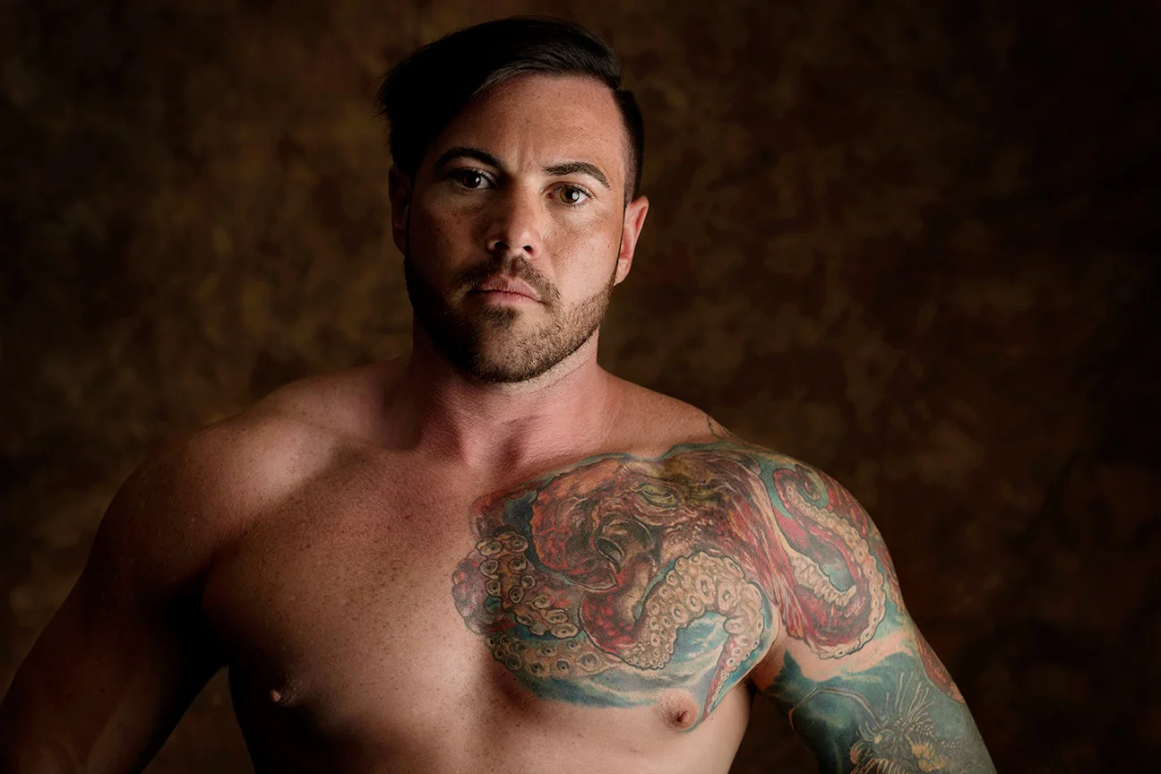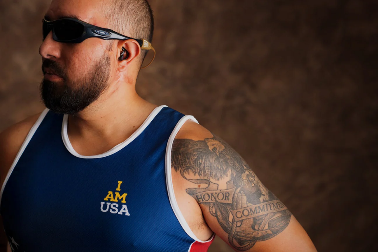 Adrian "AJ" Mohammed, 35, is from Oconomowoc, Wisconsin. He served in the Navy and competed in tandem cycling and the 100 and 200 meters in track. He designed his tattoo himself.