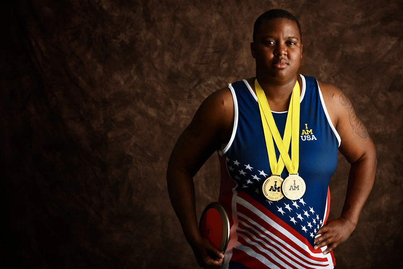Monica Southall, 36, currently resides in Richmond, Virginia. She is an Army veteran, having served as an automated logistical specialist. Southall won gold in both shot put and discus.