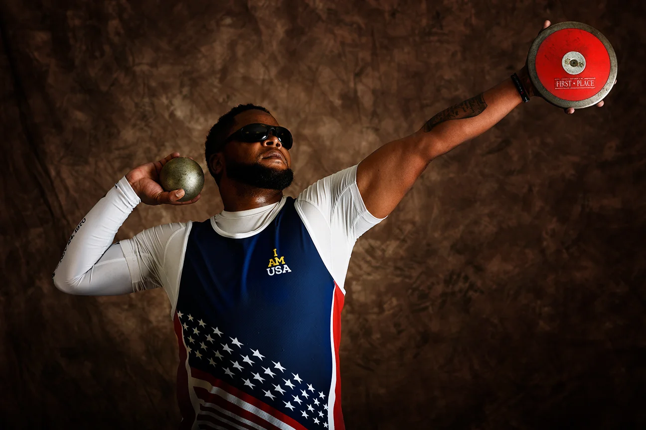 Robert Green, 37, is a veteran Army staff sergeant who served as a chemical operations specialist. He won a bronze medal in the shot put.